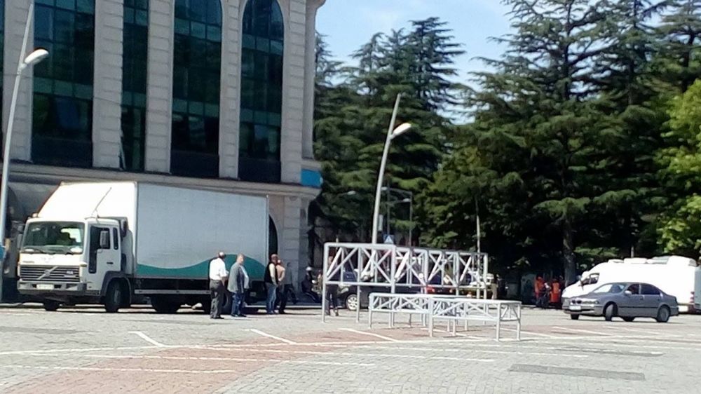 მიმდინარეობს სცენის მონტაჟი, სადაც 26 მაისს, საღამოს, გალა კონცერტი გაიმართება.