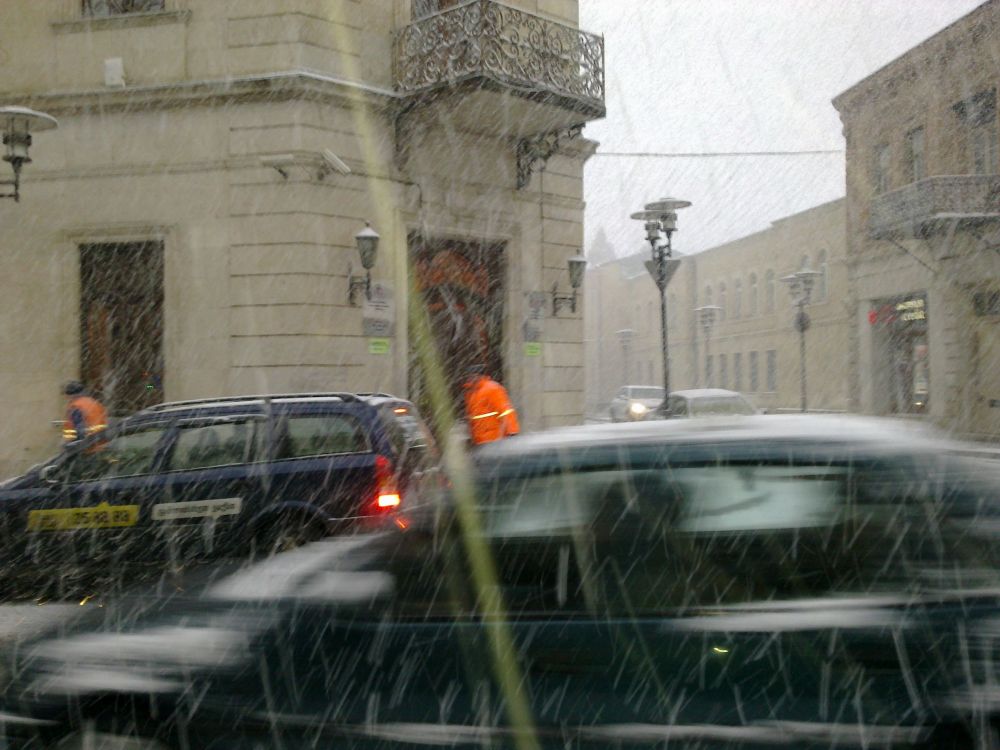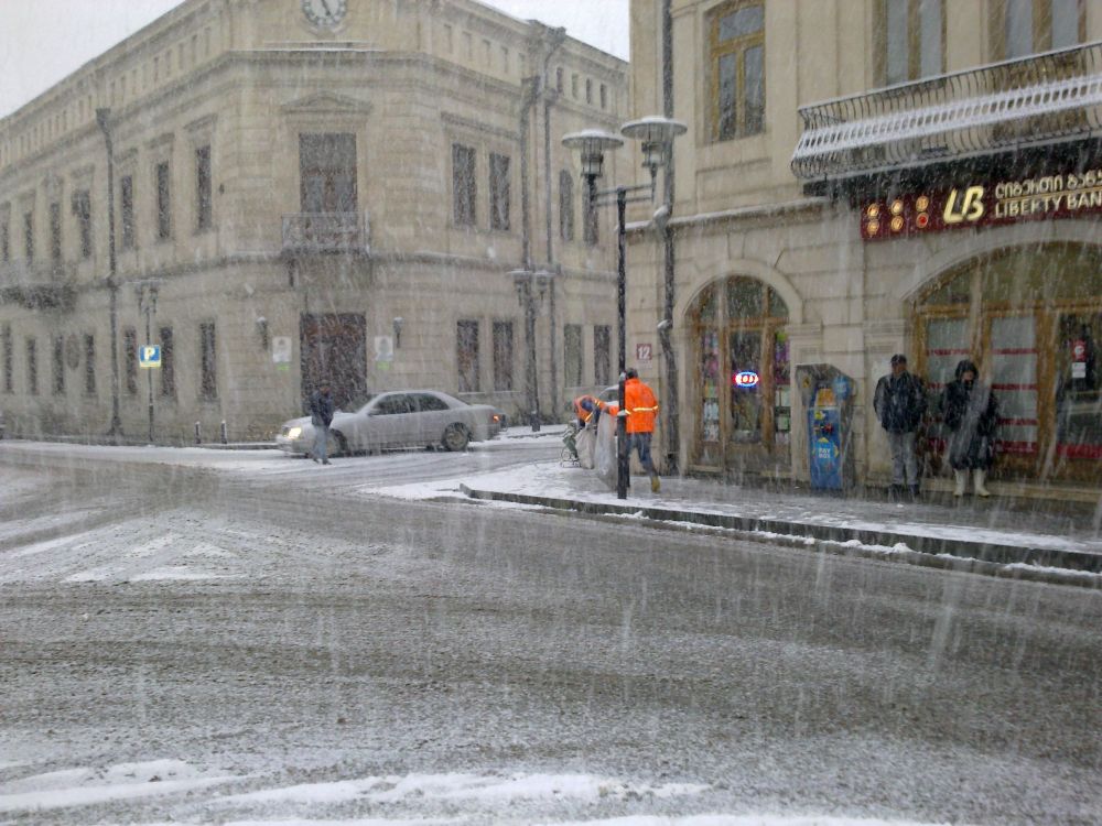 ქუთაისში, რამდენიმე საათია, გადაუღებლად თოვს. "ნიუპრესის" კამერამ დასუფთავების სამსახურის თანამშრომლები იმ დროს დააფიქსირა, როდესაც ისინი ინტენსიური თოვის მიუხედავად, თავიანთ სამსახურეობრივი მოვალეობის შესრულებას აგრძელებდნენ.