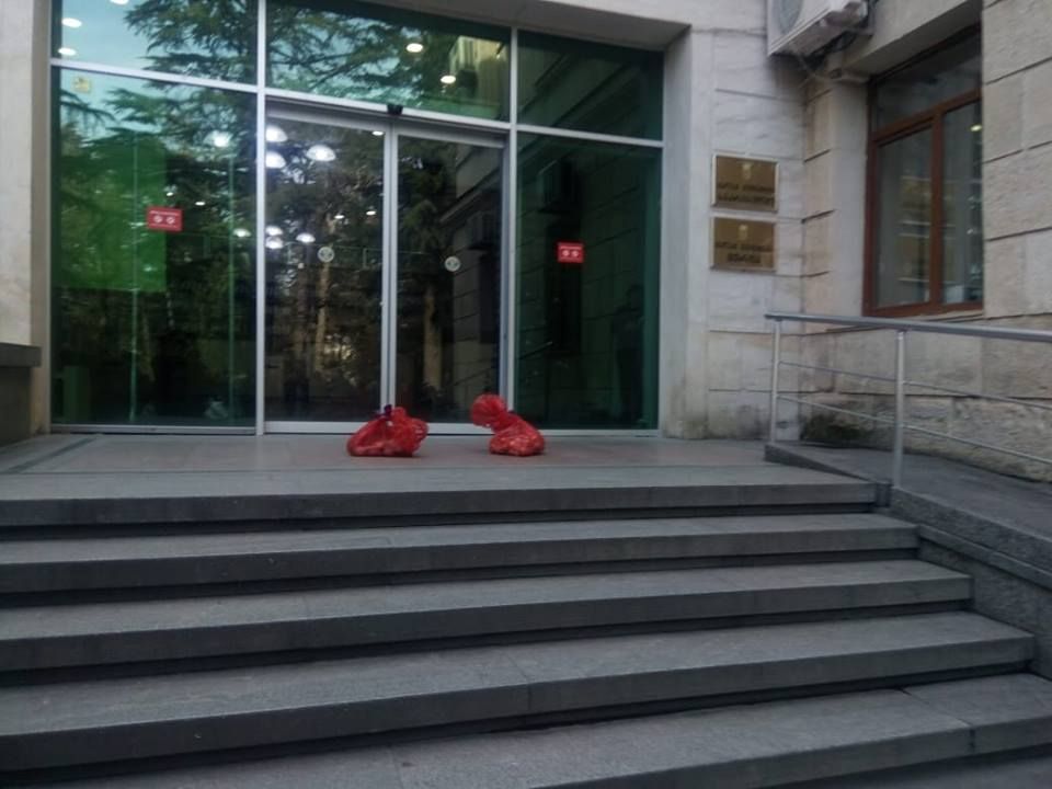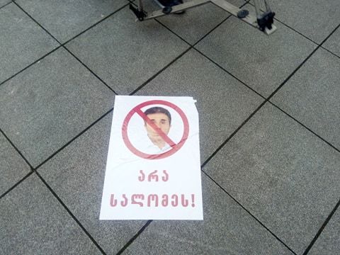 აქციის მონაწილეებმა მერიასთან ბიძინა ივანიშვილის და სალომე ზურაბიშვილის გამოსახულებით პლაკატები "არა სალომეს " დააკრეს.
