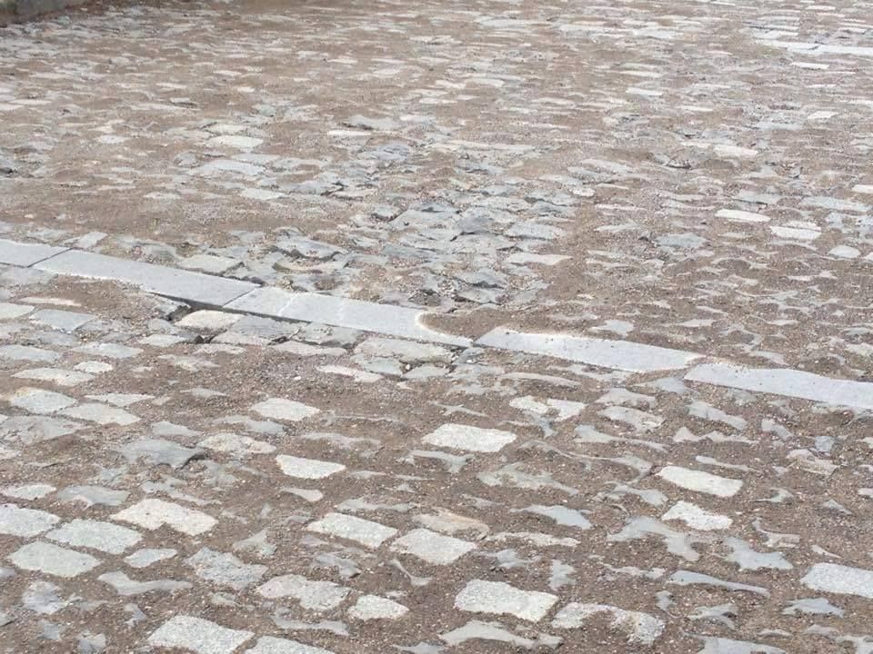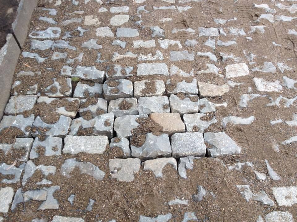 ახლად რეაბილიტირებულ ქუჩაზე ფილები ამოიყარა (ფოტო)