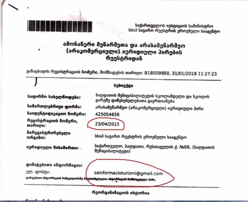 ბრალდებას უსაფუძვლდ მიიჩნევენ (ა).ი.პ ბაღდათის მუნიციპალიტეტის სკოლამდელი და სკოლისგარეშე დაწესებულებათა გაერთიანებაში. "აღნიშნული ინფორმაცია სიმართლეს არ შეესაბამება, რადგან საიდენტიფიკაციო კოდის გარეშე აღნიშნული ააიპი შესყიდვებს ვერ განახორციელებს."