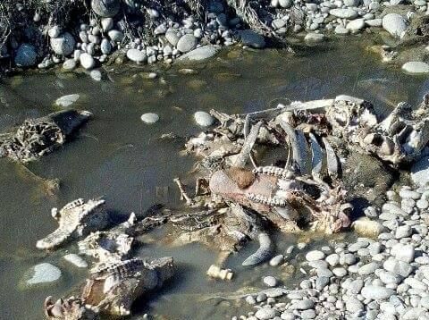 მდინარე რიონში დაკლული პირუტყვის ნარჩენები ამ დრომდე რჩება
