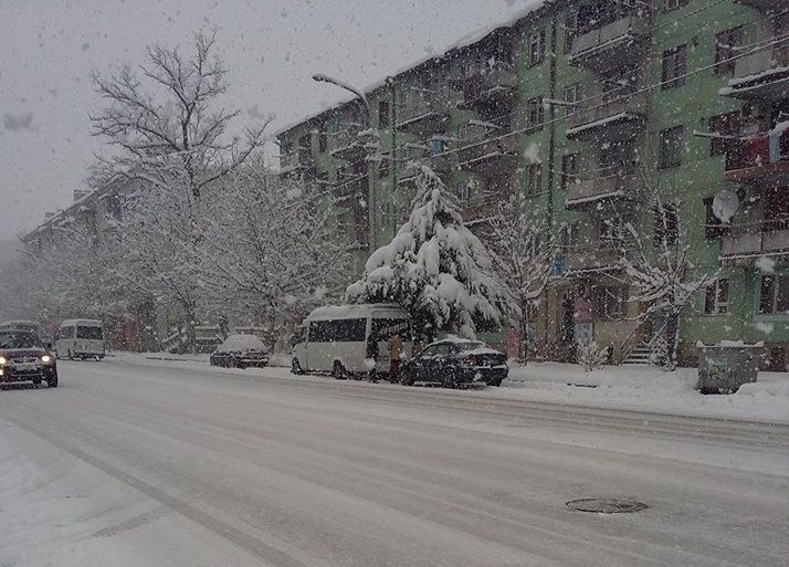 ქუთაისში თოვლის გამო ტრანსპორტის მოძრაობა შეფერხებულია