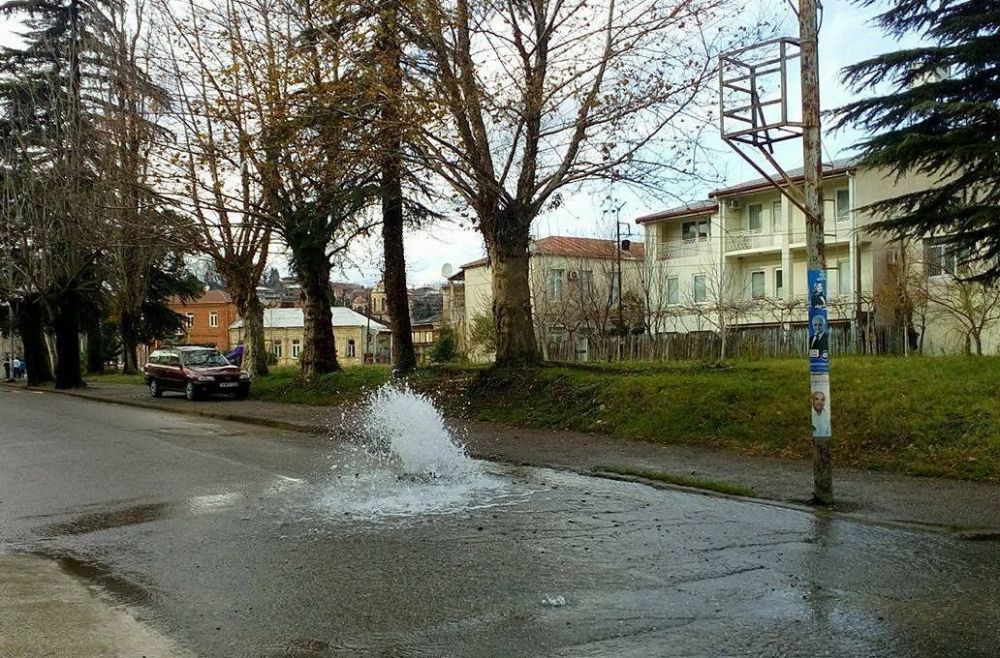 წყალი მთელი დღის განმავლობაში იღვრება, თუმცა ამ დრომდე შესაკეთებლად არავინ მისულა.