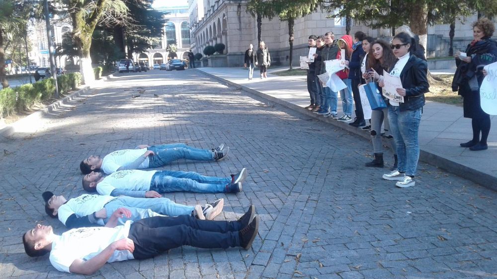 აქციის მონაწიილეები ხელისუფლებას საგზაო უსაფრთხოების პრობლემების მოსაგვარებლად ქმედითი ნაბიჯების გადადგმისკენ მოუწოდებენ.