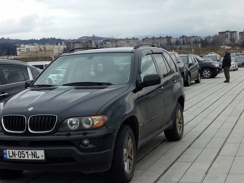 ბიძინა ივანიშვილის ფოტოთი დამშვენებული ავტომობილით კობა ლურსმანაშვილი გადაადგილდება