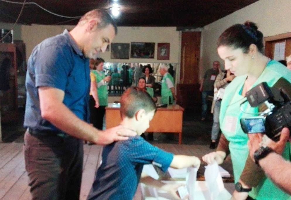 გიორგი ჭიღვარია საარჩევნო უბანზე შვილთან ერთად მივიდა