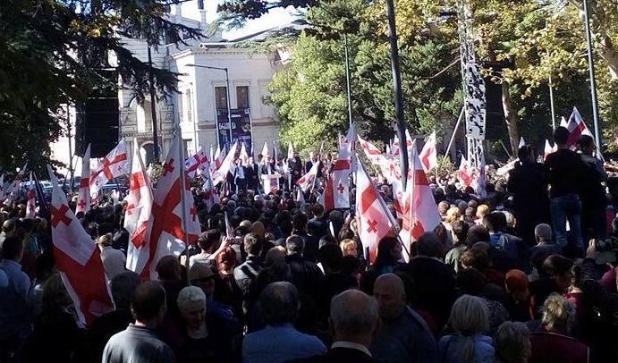 ქუთაისის მერიის წინ „ნაციონალური მოძრაობის“ წინასაარჩევნო აქცია მიმდინარეობს