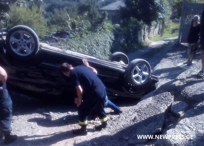 კედლის ჩამონგრევის შედეგად ავტომობილი დაზიანდა.