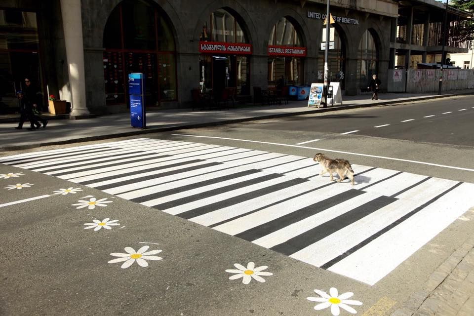 ძაღლი ზებრა გადასასვლელით სარგებლობს – ფოტო განწყობისთვის