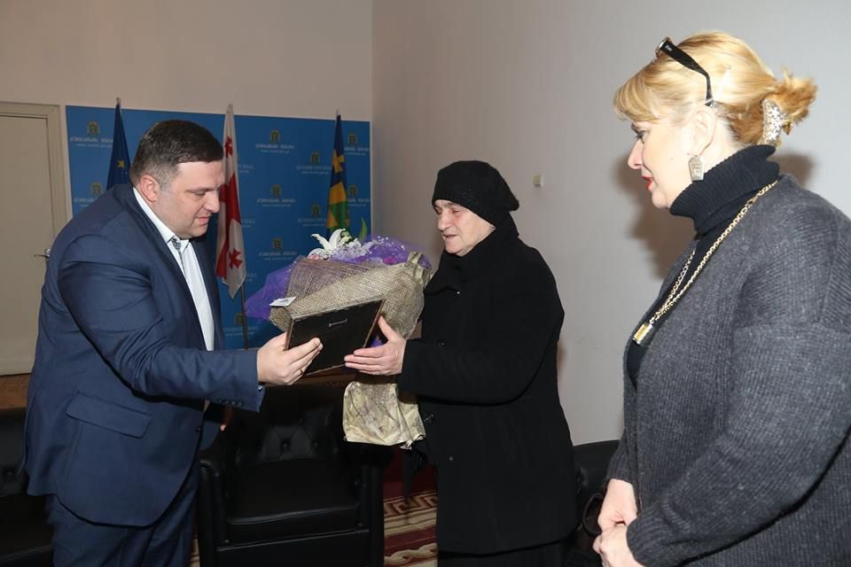 ქუთაისის მერმა ნინო ღაჭავას დედას საჩუქარი გადასცა.