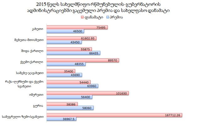 გუბერნატორების ადმინისტრაციებში 2015 წელს პრემიის და სახელფასო დანამატის სახით 1 114 928.69 ლარი გაიცა