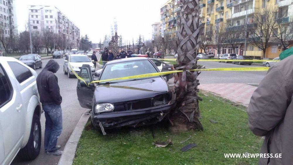 აღმაშენებლის გამზირზე ავტომანქანა პალმას დაეტაკა (ფოტო)