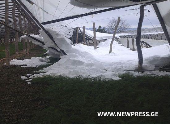 დამტვრეულია ხისა და ცელოფნის კონსტრუქციის სათბურები, განადგურდა მწვანილის ნათესები.