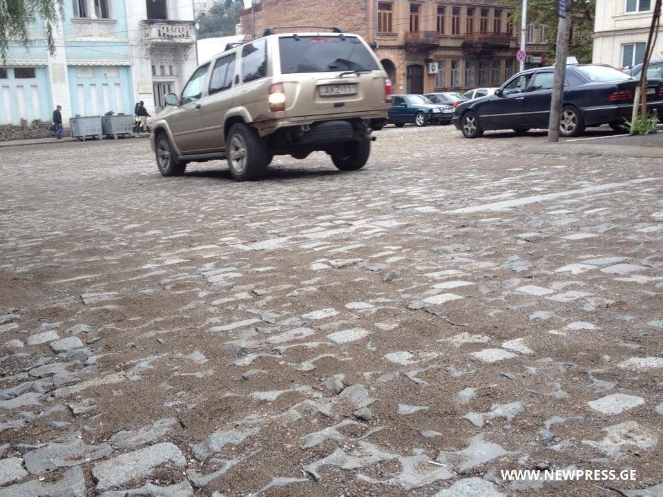 ახლად რეაბილიტირებულ ქუჩაზე ფილები ამოიყარა (ფოტო)
