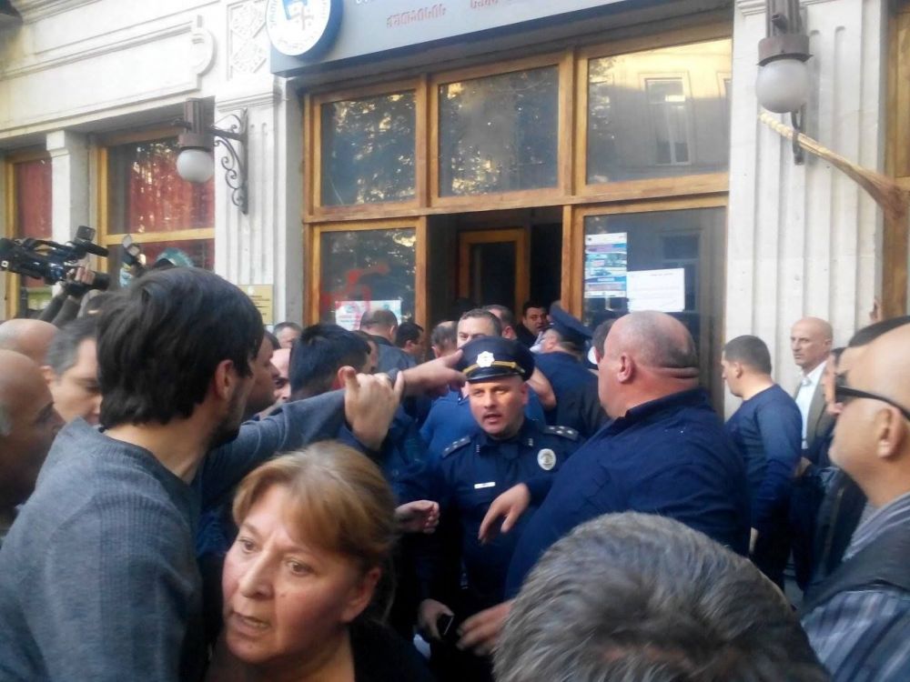 "ქართული ოცნების" აქტივისტები "ნაციონალების" ოფისში შეჭრას ცდილობენ (ვიდეო)