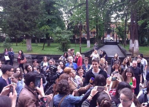 სტუდენტებმა მსახიობს კითხვები დაუსვეს და მასთან სამახსოვრო ფოტოები გადაიღეს.