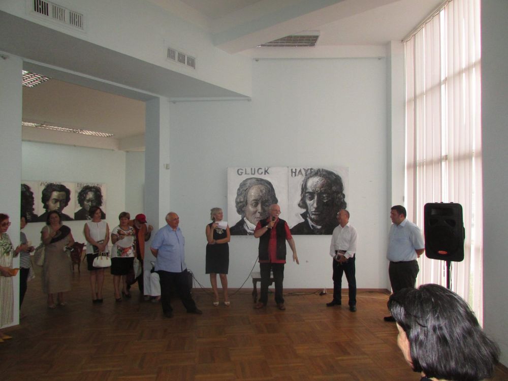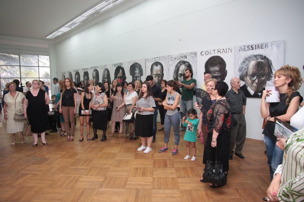 ექსპოზიციაზე თემატური სერიიდან 35-მდე ნამუშევარი იყო წარმოდგენილი, რომელიც ცნობილი კომპოზიტორების პორტრეტებს მოიცავდა.