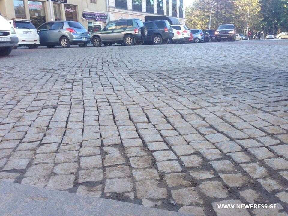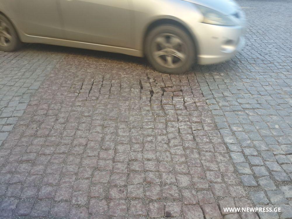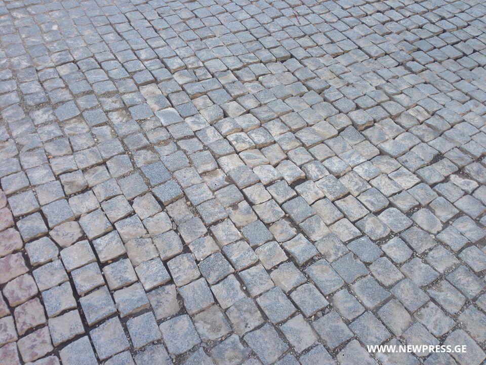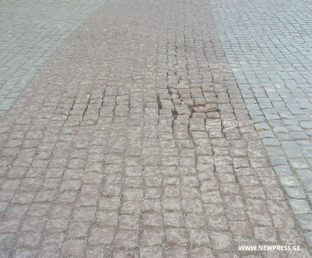ქუთაისის ცენტრალურ მოედანზე მრავალჯერ რეაბილიტირებული ფილები კვლავ დაზიანებულია.