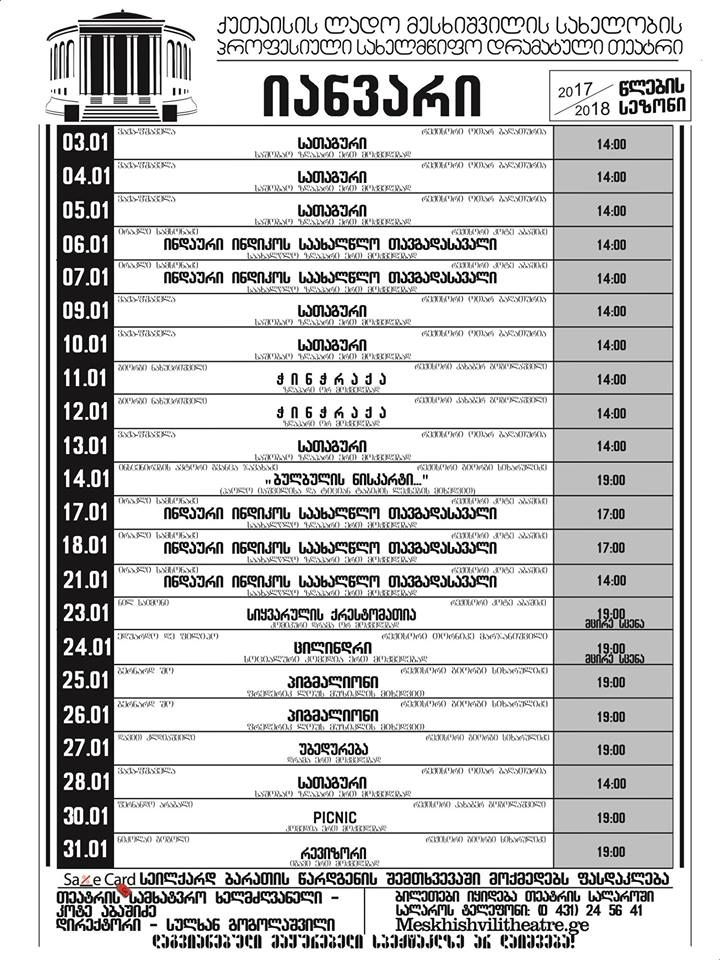 თეატრში იანვრის განმავლობაში ყველა ასაკის მაყურებელზე გათვლილი სპექტაკლი გაიმართება.