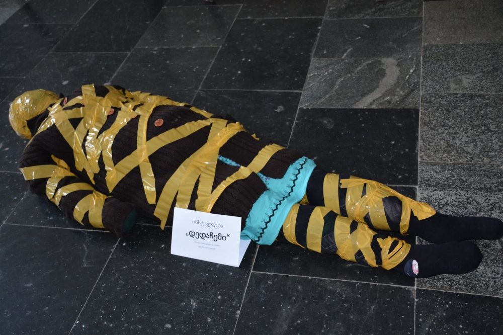 "დედაჩემი" – ასე ჰქვია გამოფენა –ინსტალაციას, რომელიც წერეთლის უნივესრიტეტში მოეწყო. მხატვრებმა ლია უკლებამ და ქრისტინე რობაქიძემ მიგრაციის თემაზე შექმნილი ნამუშევრები წარმოადგინეს. აქვე წარმოდგენილი იყო წებოვან ლენტშემოხვეული ადამიანის ფიტული, ნიშნად იმისა, რომ მიგრანტი ქალები, უმეტესწილად დედები ამანათებთან ასოცირდებიან.