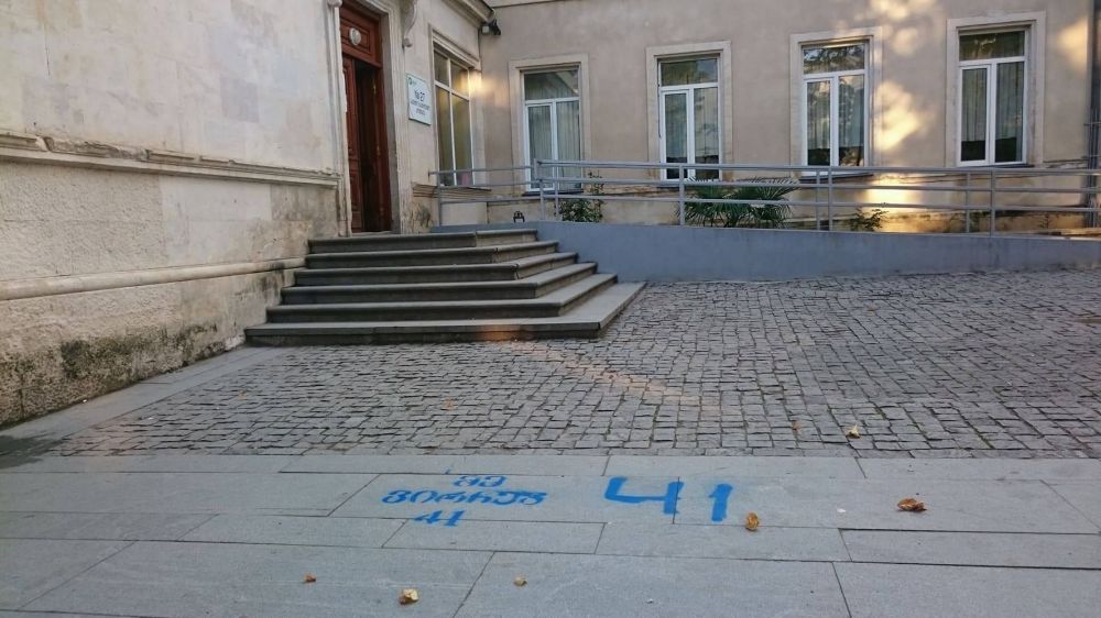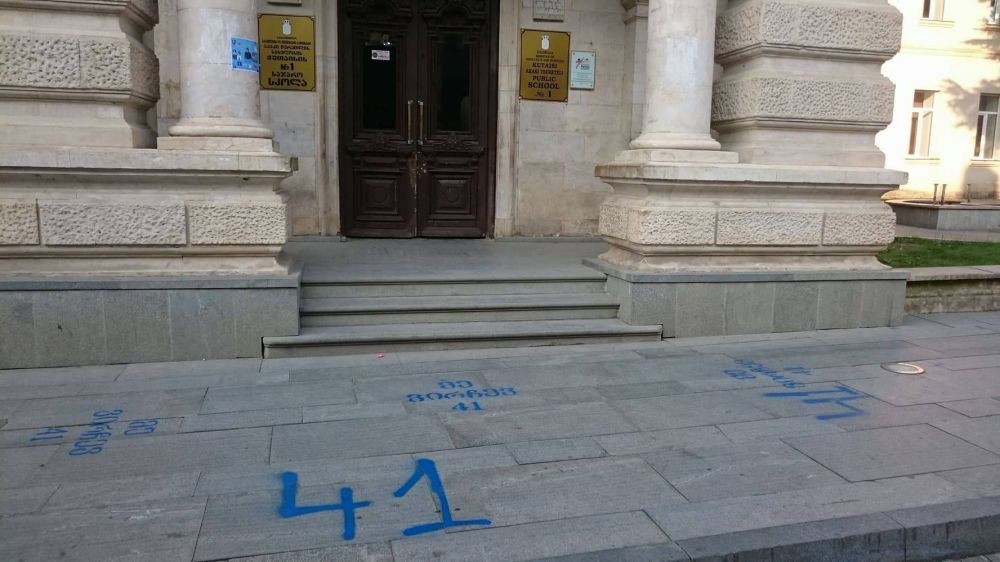ქუთაისის #26 საარჩევნო უბნის წინ, შესასვლელთან გაკეთებულია წარწერა - "მე ვირჩევს 41-ს" .