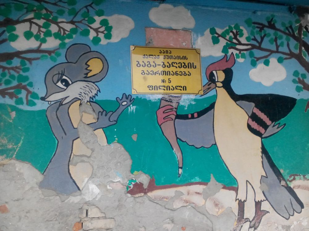 ქუთაისის ბაგა–ბაღების გაერთიანების #5 ფილიალი ავტოქარხანაში მდებარეობს. ბაღის ეზოს ნაწილი დაზიანებულია და ერთ–ერთი ცენტრალურ შესასვლელში წყალი დგას, რის გამოც ეზოში შესვლა შეუძლებელია. წყალი დგას ბაღის სარდაფშიც. დაზიანებულია ბაღის ეზოში მდებარე ატრაქციონები. არსებული მდგომარეობა "ნიუპრესის" ობიექტივმა დღეს დააფიქსირა.