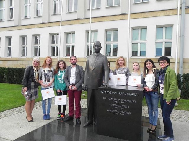 ფოტო არქივიდან- ქ. ტორუნში რაცკევიჩის ძეგლთან საქართველოს ახალგაზრდული ინიციატივების ცენტრის ხელმძღვანელი შალვა კამლაძე "ვეფხისტყაოსნის" პოლონურენოვანი თარგმანის კალიგრაფიულად შესრულებისათვის ახალგაზრდებს აჯილდოებს.