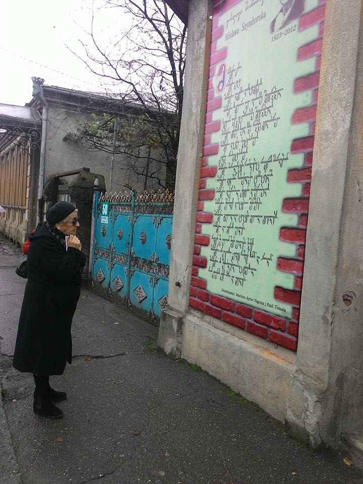 ცოტა ხნის წინ ტაბიძის ქუჩაზე ერთ-ერთ სახლზე პოლონელი პოეტის ვისლავა შიმბორსკას ლექსი განთავსდა. ლექსი ლამაზი კალიგრაფიით არის შესრულებული, რაც მას ვიზუალურ ეფექტსაც სძენს. მოქალაქეები ჩერდებიან ნამუშევრების წინ და კითხულობენ, შემდეგ კი პროექტის ავტორების მიმართ მადლიერებას გამოხატავენ.