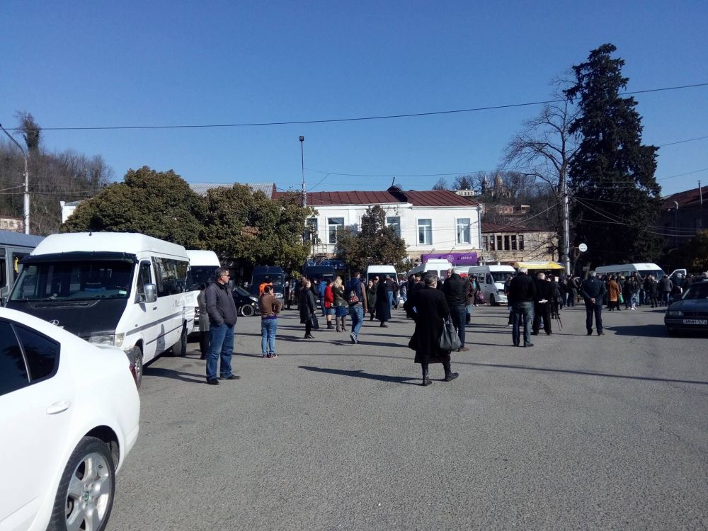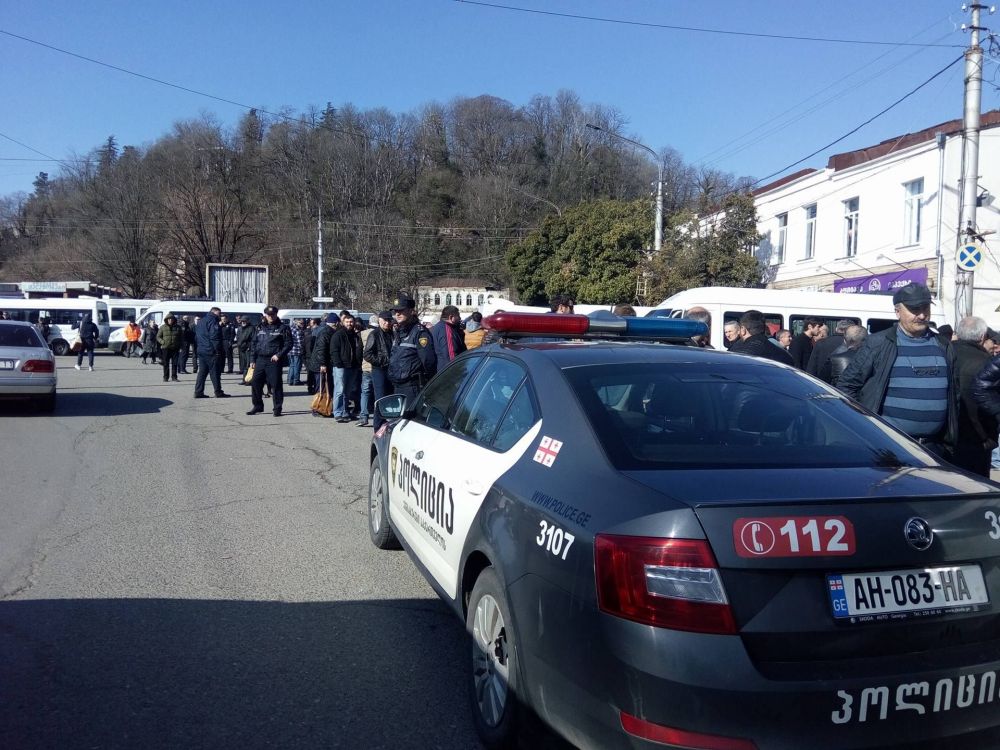 მიკროავტობუსები წითელ ხიდთან არის გაჩერებული. ადგილზე მობილიზებულია საპატრულო პოლიცია.