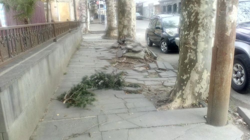 ქალაქის ძველ უბნებში შენობის სახურავებიდან დამსხვრეული შიფერის ნაწილები, ხეებიდან კი მოტეხილი ტოტები ცვივა.