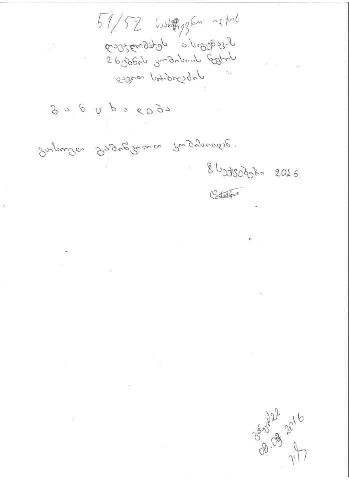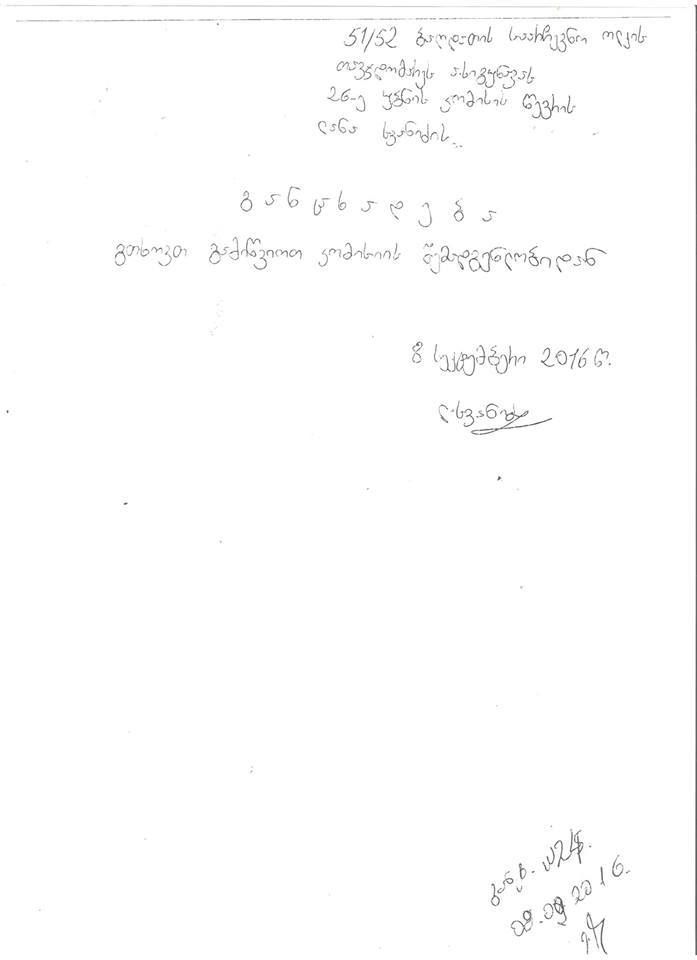 აქვე ვაქვეყნებთ კომისიის წევრების განცხადებებსაც, რომლებიც ერთი და იმავე თარიღით, 8 სექტემბრითაა დათარიღებული. საუბნო კომისიის შესარჩევი ხელახალი კონკურსი ბაღდათის #52 საოლქო კომისიამ დღეს გამოაცხადა.