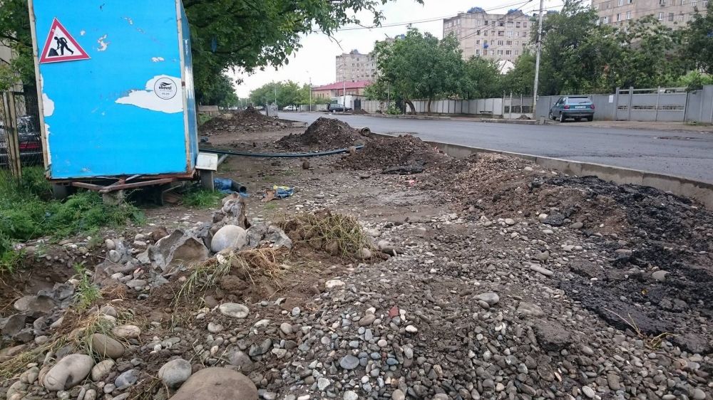 ასე გამოიყურება "აია არენას" მიმდებარე კონსტანტინე გამსახურდიას ქუჩა. მიუხედავად იმისა, რომ მერიაში აცხადებდნენ, რომ ჩემპიონატის შესახვედრად ინფრასტრუქტურის მოწესრიგება მიმდინარეობს, რომელსაც მონიტორინგს თავად ქალაქის მერი უწევდა.