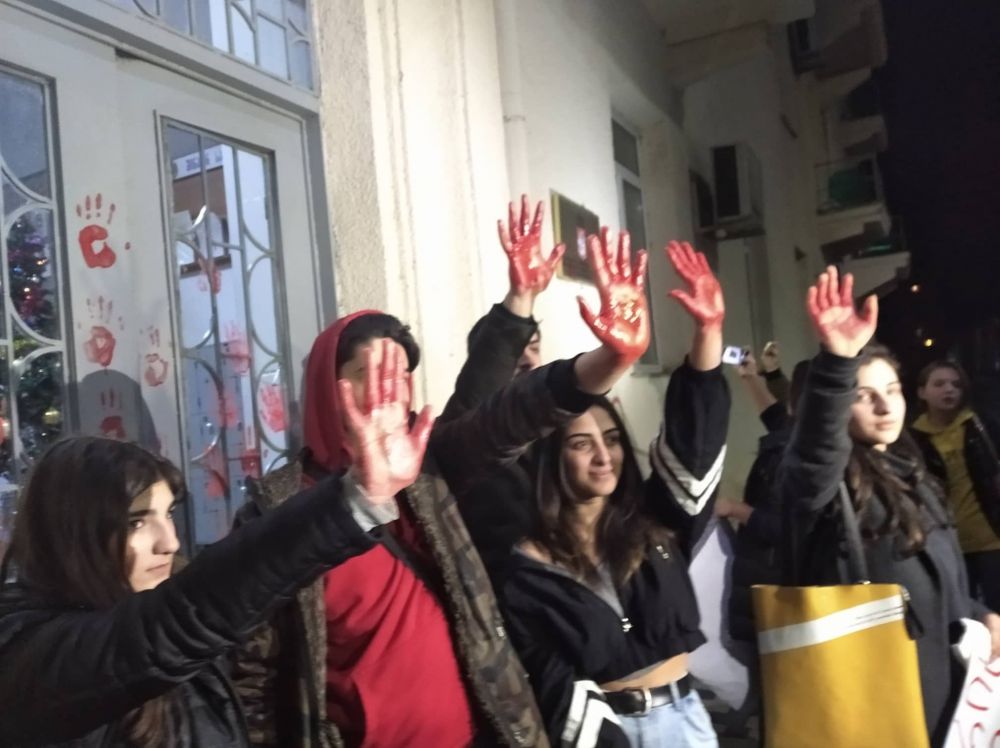 მათ წითელი საღებავით დეპარტამენტის კარზე ხელის ანაბეჭდები დატოვეს და მოუწოდეს თანამშრომლებს, რომ ეს არ წაიშალონ.