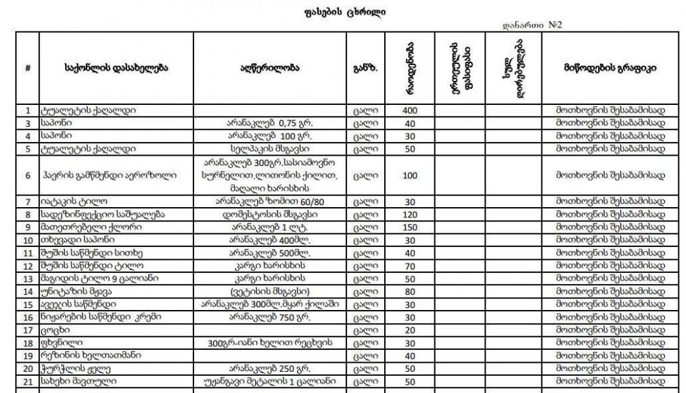თერჯოლა 2 000 ლარის საწმენდ პროდუქციას ყიდულობს