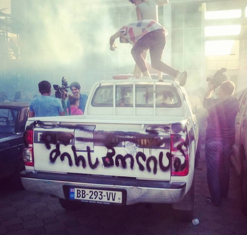 აქციის მონაწილეებმა ასევე თეთრი ფერის ბოლი გაუშვეს.