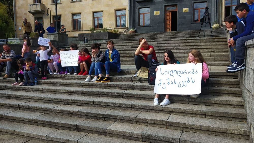 აქციაზე იმყოფებიან მერიის სხვა თანამშრომლები და მოქალაქეები. მშობლების ნაწილმა ბავშვები ბაღებსა და სკოლებში არ გაუშვა.