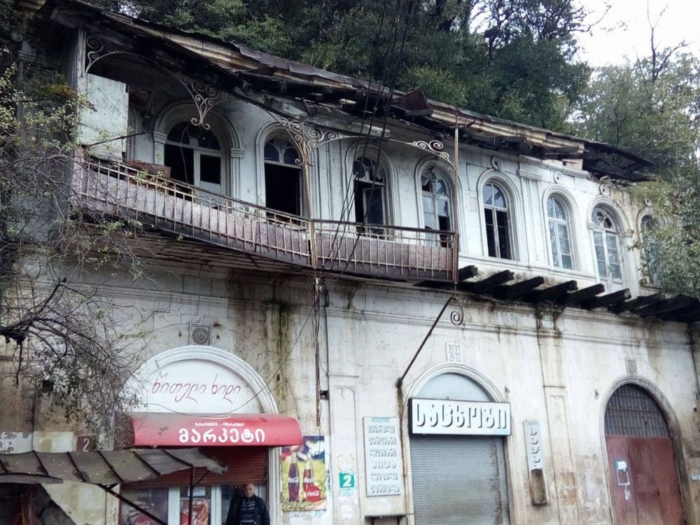 ავარიული შენობის პირველ სართულზე მაღაზიებია განთავსებული.