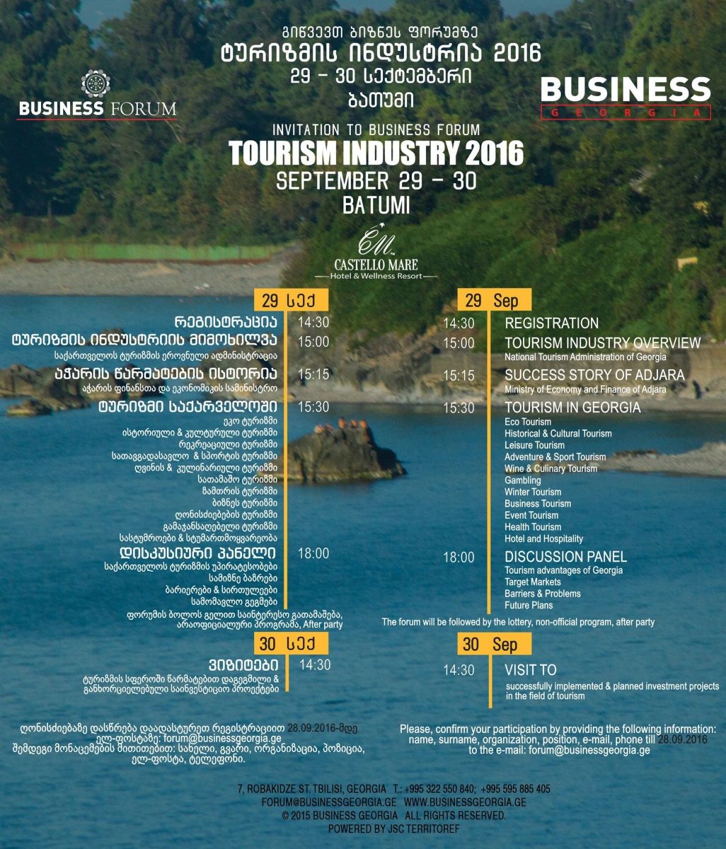 ბიზნეს ფორუმი - ‘’ტურიზმის ინდუსტრია 2016‘’ ბიზნეს ჯორჯიას ორგანიზებით გაიმართება