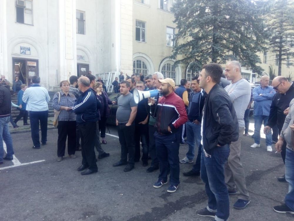 ტყიბულში გაფიცულმა მეშახტეებმა ქალაქის მერიის წინ გადაინაცვლეს