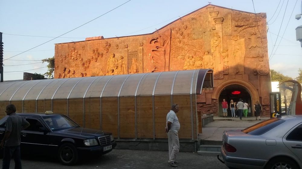 ქუთაისში კულტურული მემკვიდრეობის ძეგლს წინ უსახური კონსტრუქცია ჩამოაფარეს.