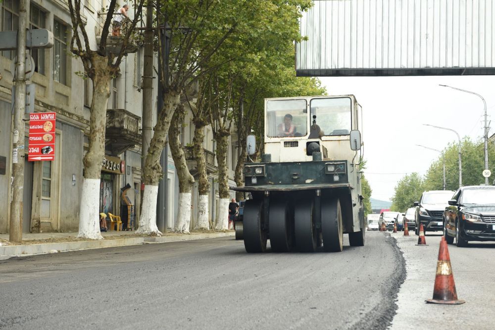 ქუთაისში რუსთაველის გამზირზე ასფალტის მეორე ფენა იგება