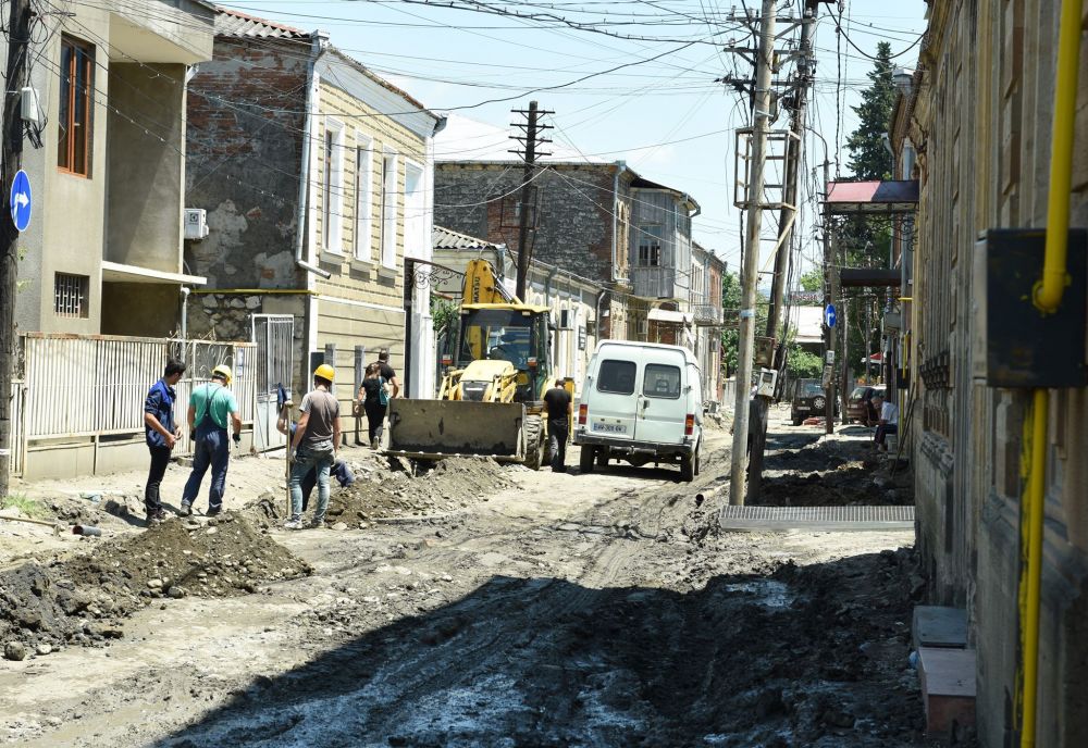 ქუთაისში, ლორთქიფანიძის ქუჩაზე გზის საფარის მოწყობა მიმდინარეობს