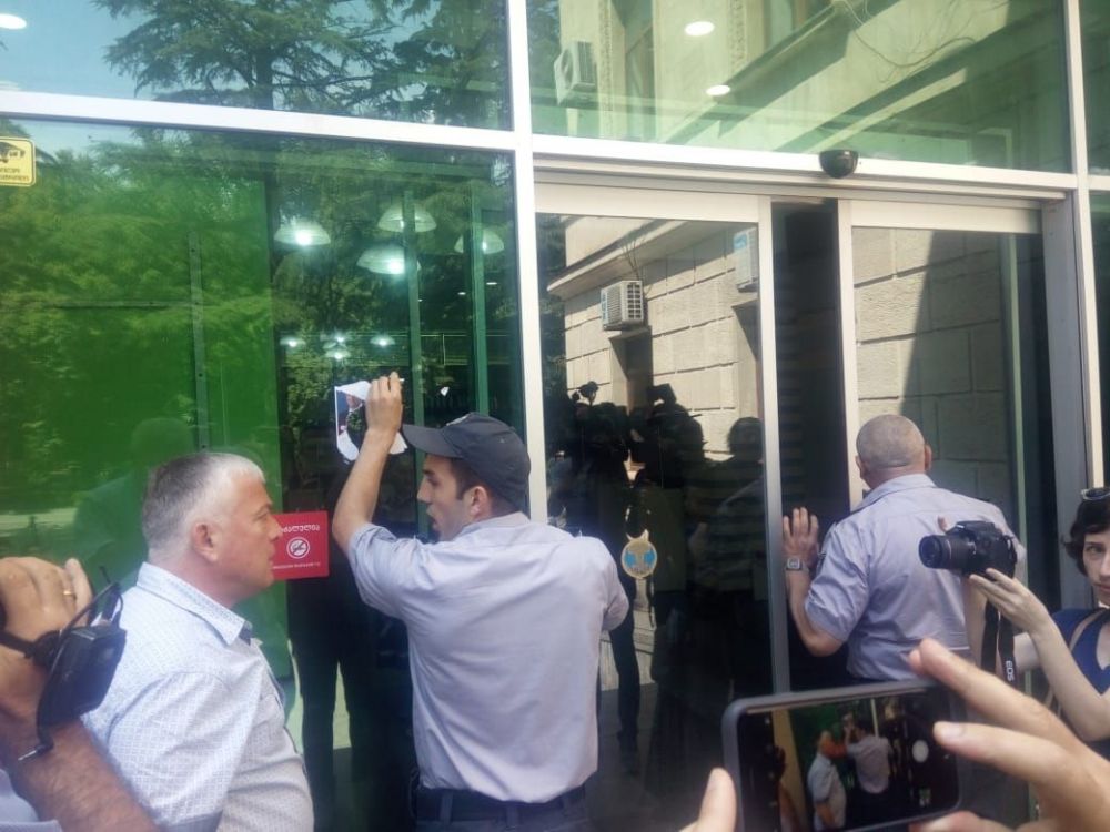 ქუთაისის მაჟორიტარი დეპუტატების ფოტოებიანი სტიკერები მერიის შენობაზე გააკრეს.