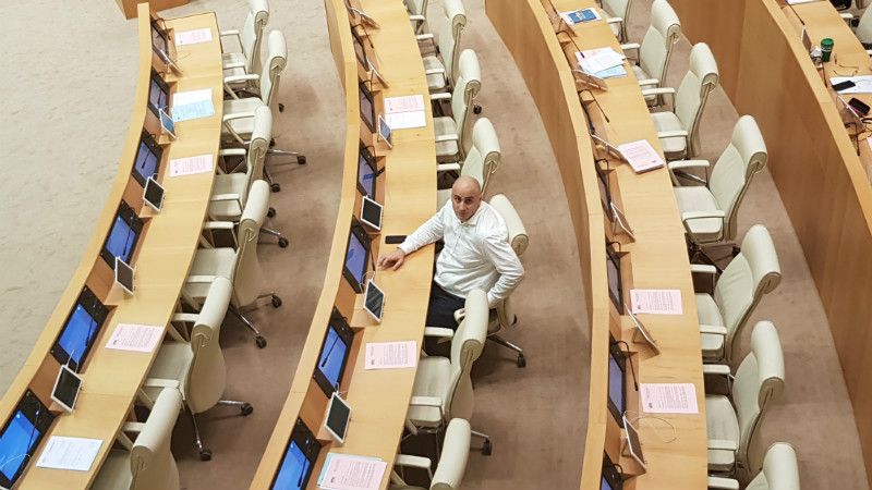 პლენარულ სხდომაზე ოპოზიციის ფლანგზე ნიკა მელია მარტო იჯდა.