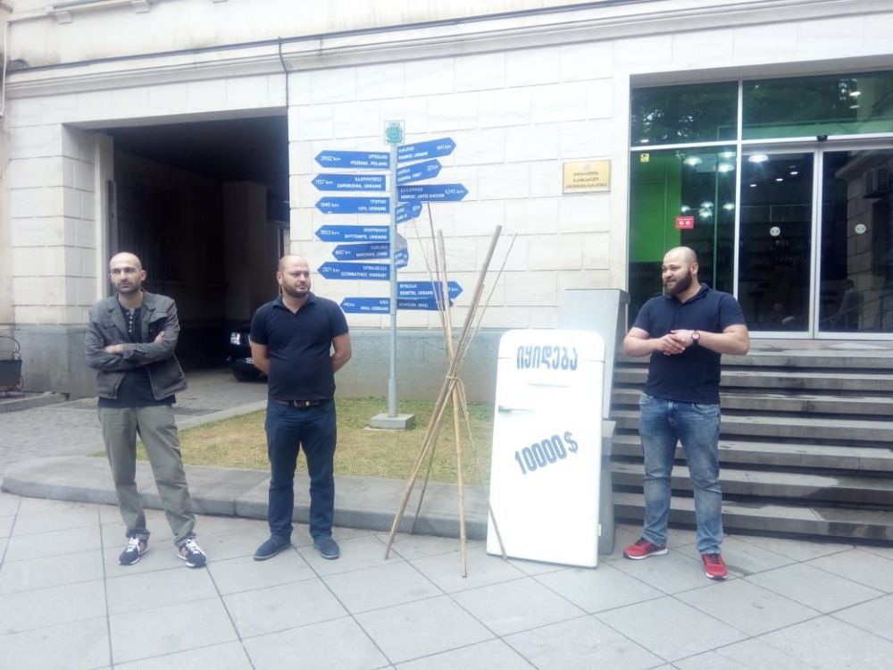 ბამბუკებით და მაცივრით ქუთაისის მერიასთან - კაფე "სავანეს" მფლობელებმა მორიგი აქცია გამართეს