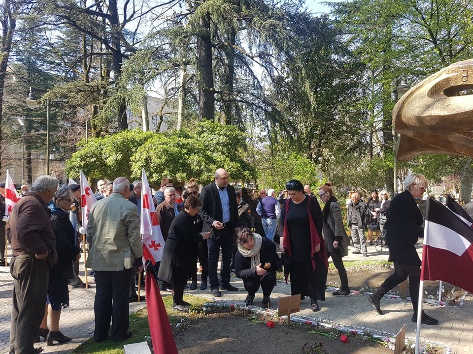 9 აპრილის მემორიალთან მოქალაქეები, კადეტები, ადგილობრივი მთავრობის წევრები და ოპოზიციური პარტიის წარმომადგენლები შეიკრიბნენ.