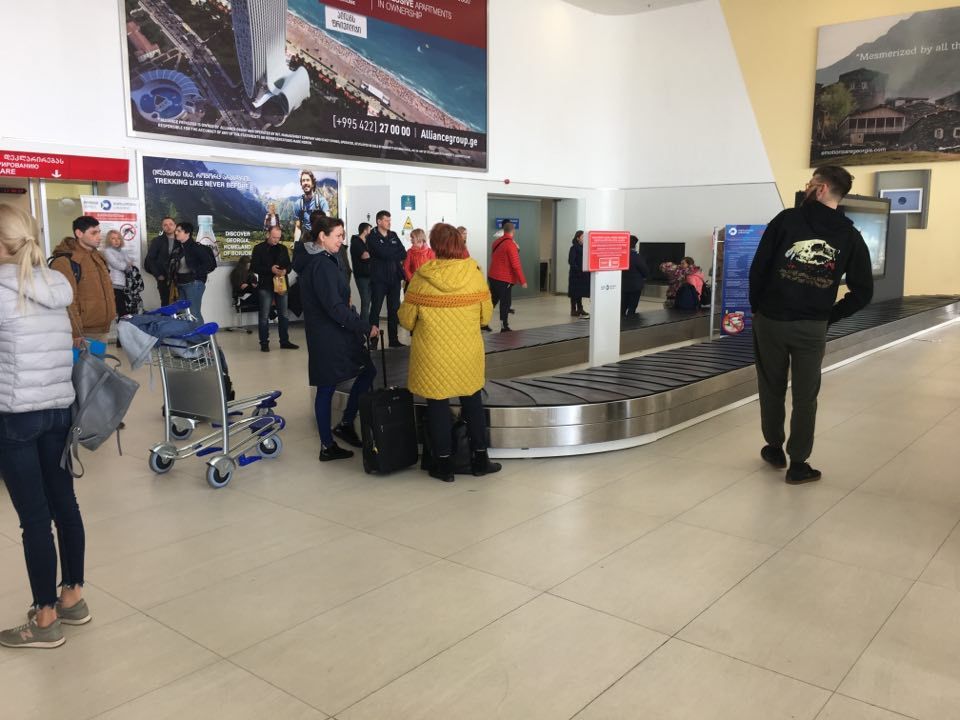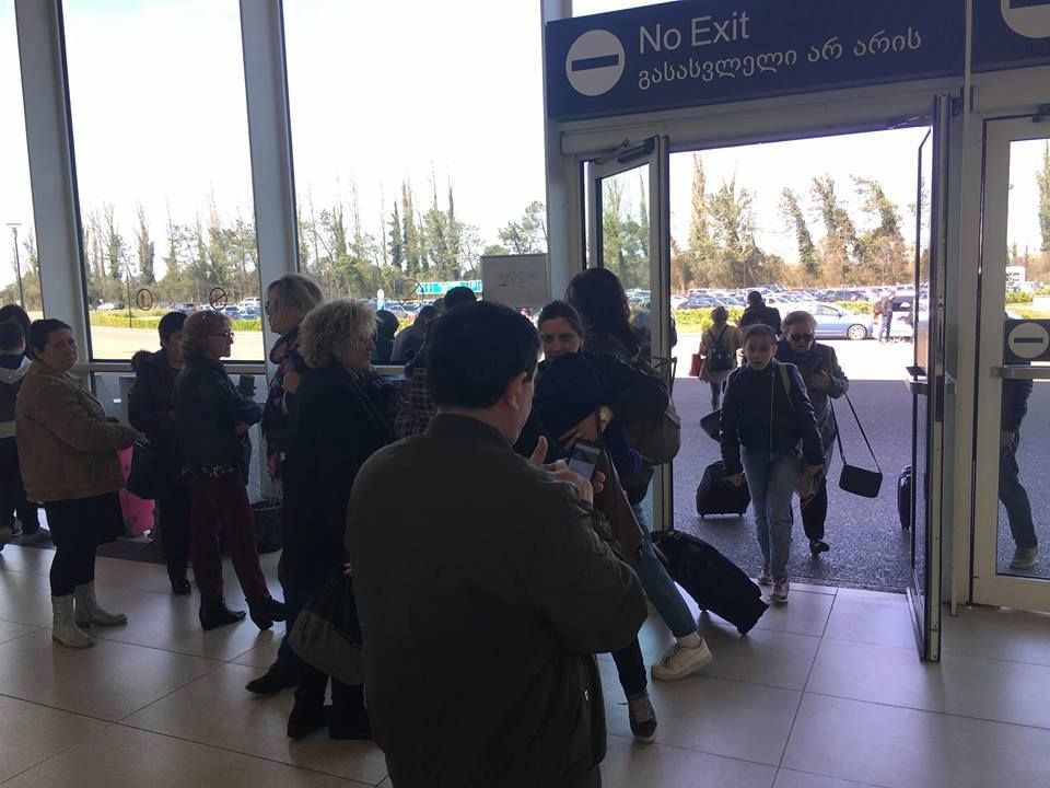 მგზავრები საათზე მეტია აეროპორტში არიან.