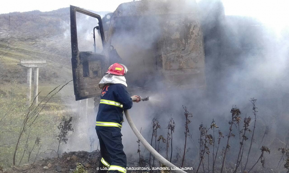 ზესტაფონში სატვირთო ავტომობილს ცეცხლი გაუჩნდა