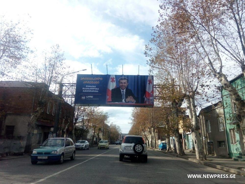 სალომე ზურაბიშვილის სარეკლამო ბანერი ბიძინა ივანიშვილის გამოსახულებით ქუთაისშიც გამოჩნდა